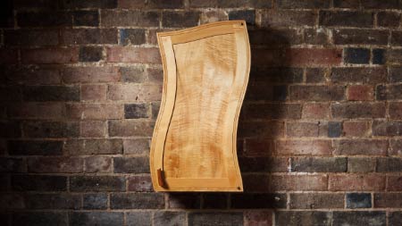 This wall-mounted cabinet is designed and made to house five champagne flutes in a unique and quirky manner.