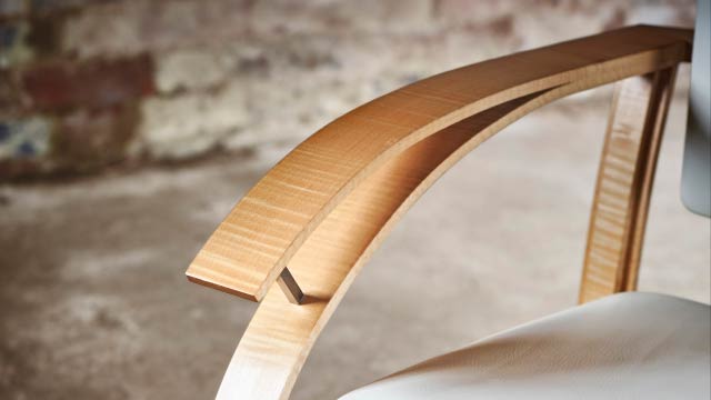 The chair brings together the aspects of its different materials: the rippled Sycamore resembles depth and character, while the stainless steel resembles direction and strong purpose.