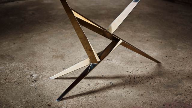 This dining table underframe was inspired by the contrasts of a city characterised by exciting and modernistic architecture situated next to historic landmarks.