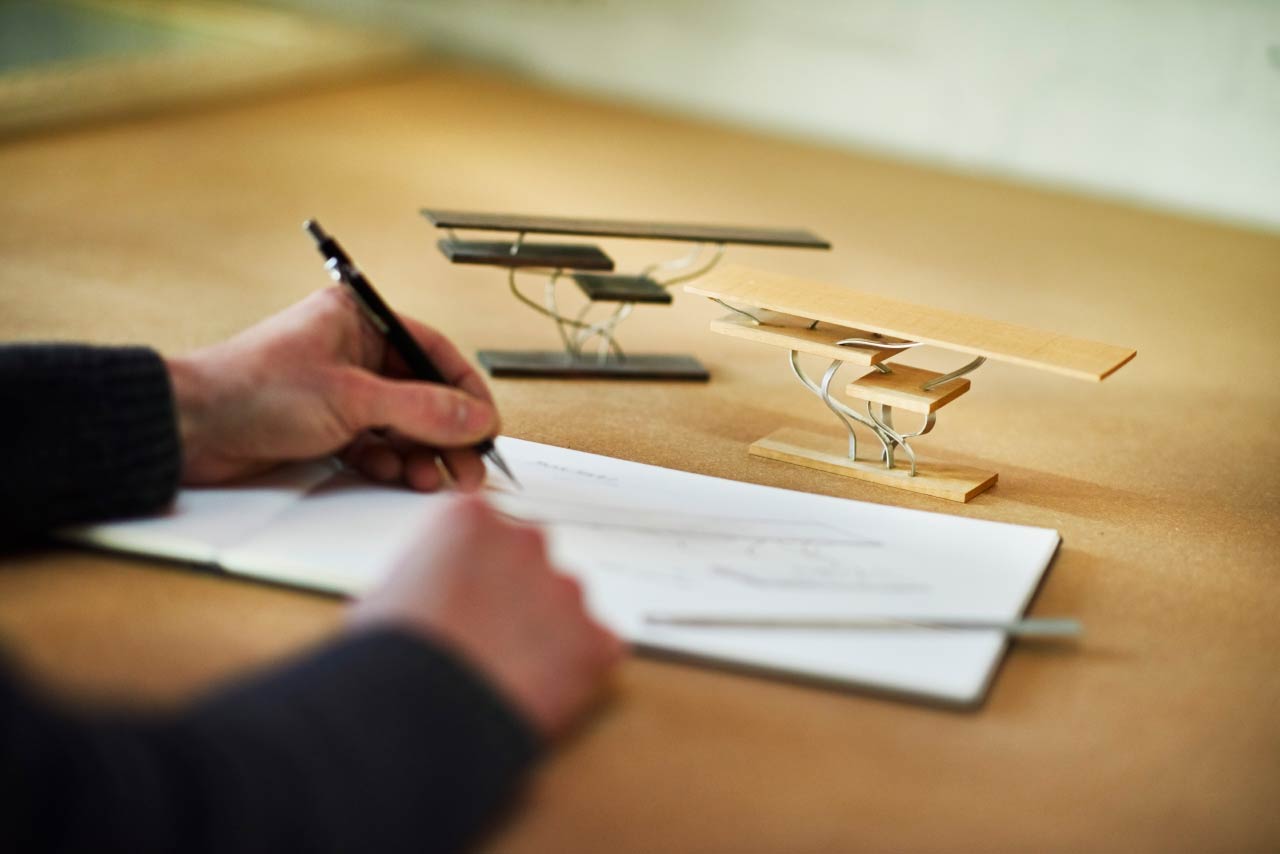 After the initial meeting, Matthew will generate sketches and create samples to show his vision. Once a design is agreed upon, Matthew will complete a final technical drawing to work from, along with a CAD drawing, models, mock ups and further samples if required.